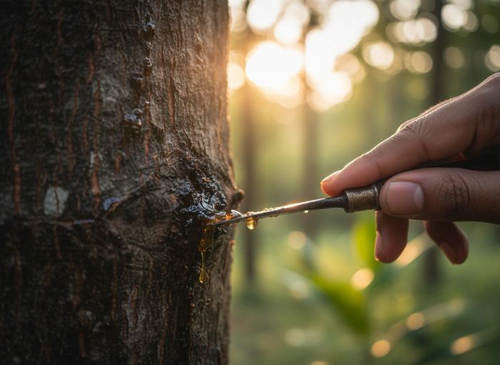 Used in Ottoman Fire and Desert Smoke, agarwood oil is one of the most precious materials in perfumery. Formed only when Aquilaria trees naturally produce resin in response to stress, true oud takes decades to develop and is harvested in extremely limited quantities. The distillation process is slow, complex, and yields very little oil — making genuine agarwood exceptionally rare and valuable. Its deep, smoky, resinous character gives Ottoman Fire its unmistakable warmth and intensity.